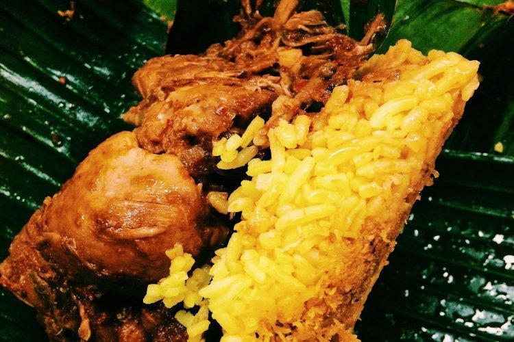 - Campur beras biasa dan beras ketan, kemudian bersihkan dan rendam selama 25 menit dengan tambahan air kunyit dan air jeruk nipis, lalu sisihkan.