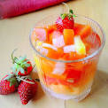 - Langkah pertama adalah dengan memasukkan beberapa potongan semangka, alpukat, strawberry, melon, serta rumput laut dalam sebuah gelas yang berukuran agak besar.